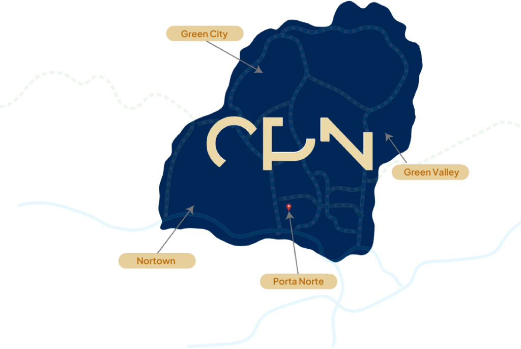 Porta Norte será el “Town Center” de Ciudad Panamá Norte. Estamos ubicados en el corazón de los nuevos desarrollos del área; entre Green City, Green Valley y Nortown, lo que nos convierte en un punto de encuentro y la puerta de entrada a la zona con mayor crecimiento de la capital.